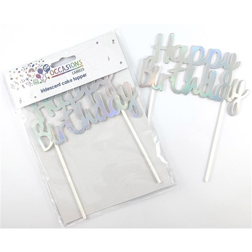 Alpen Occasions Happy Birthday Cake Topper 100W x 135mmH Metallic Iridescent