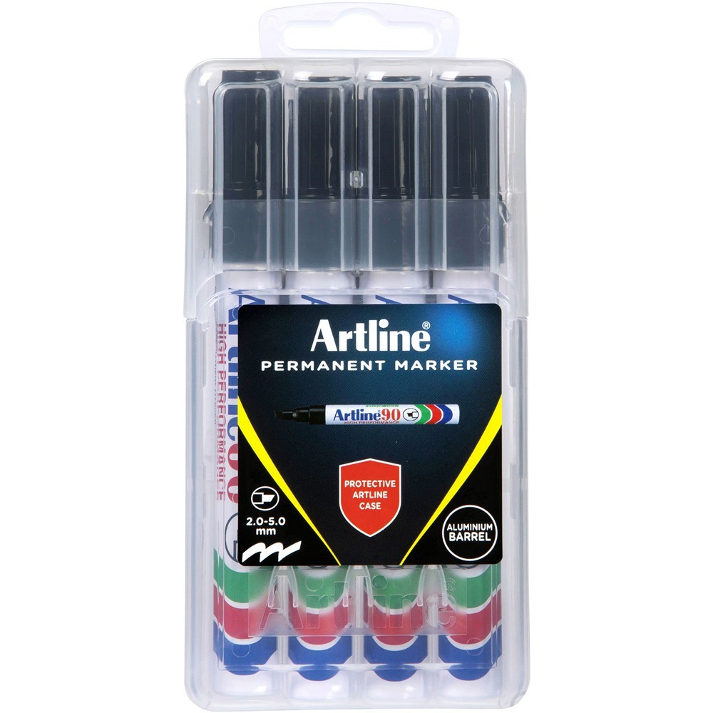 Artline 90 Permanent Markers Chisel 2-5mm Assorted Hard Case Pack Of 4