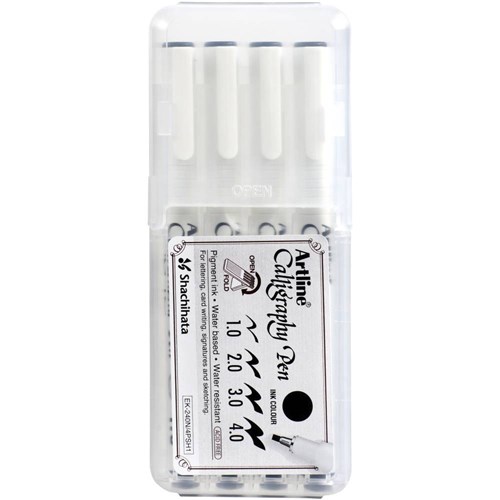 Artline Calligraphy Pens Wedge Assorted Width Black Hard Case Pack Of 4