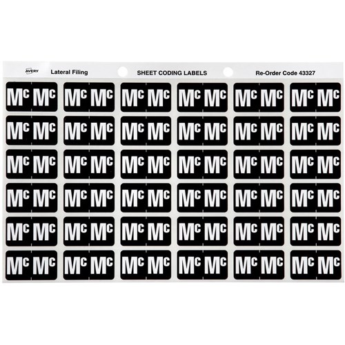 Avery Alphabet Coding Label Mc Side Tab 25x38mm White Black Pack Of 180