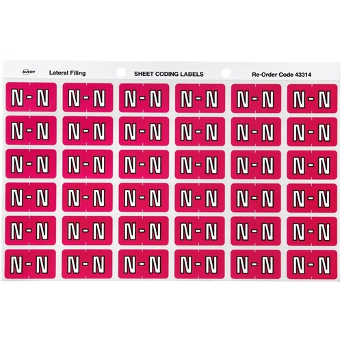 Avery Alphabet Coding Label N Side Tab 25x38mm Magenta Pack Of 180