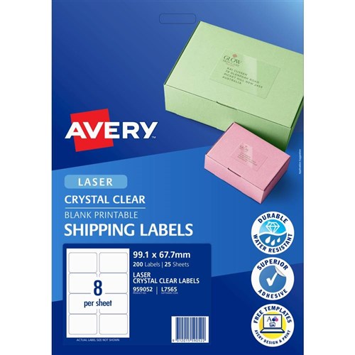 Avery Crystal Clear Laser Shipping Labels White L7565 99.1x67.7 mm 8UP 200 Labels