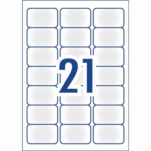Size: 63.5x38.1mm 525 labels, 25 sheets. 21 labels per sheet (21UP).