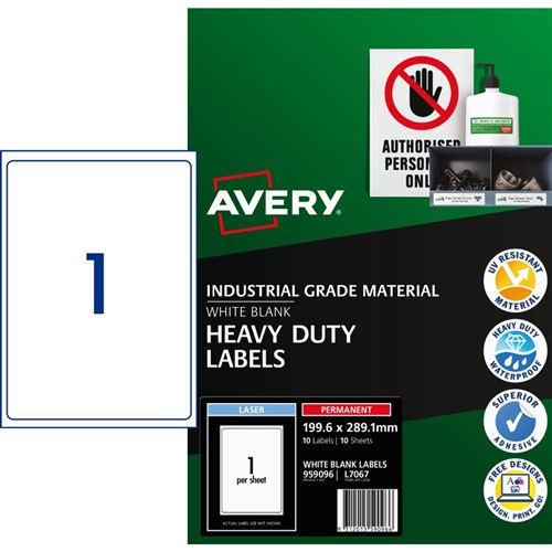 Avery Identification Laser Heavy Duty White L7067 199.6 x 289.1mm 1UP 25 Labels