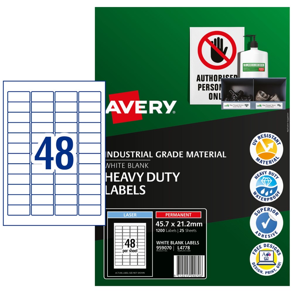 AVERY L4778 DURABLE LABEL H/D Laser 48/Sht 45.7x21.2 White