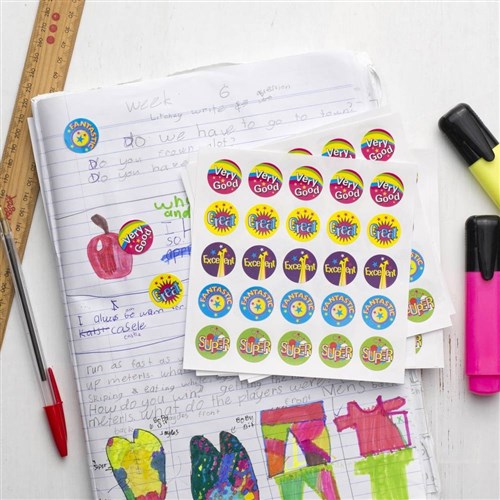 Avery Merit Stickers Caption 2 Round 22mm 5 Designs Assorted Colours 300 Stickers