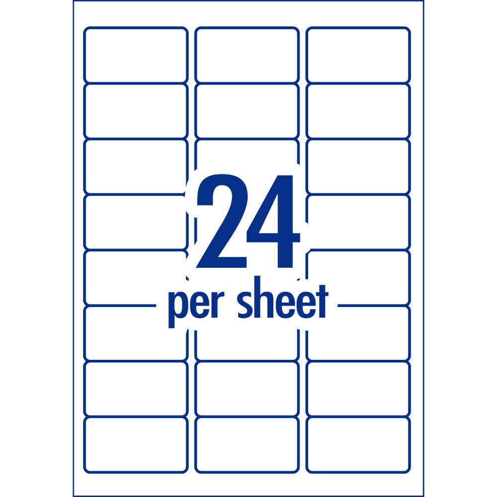 • Size: 64 x 33.8mm, 480 labels, 20 sheets, 24 labels per sheet (24UP).