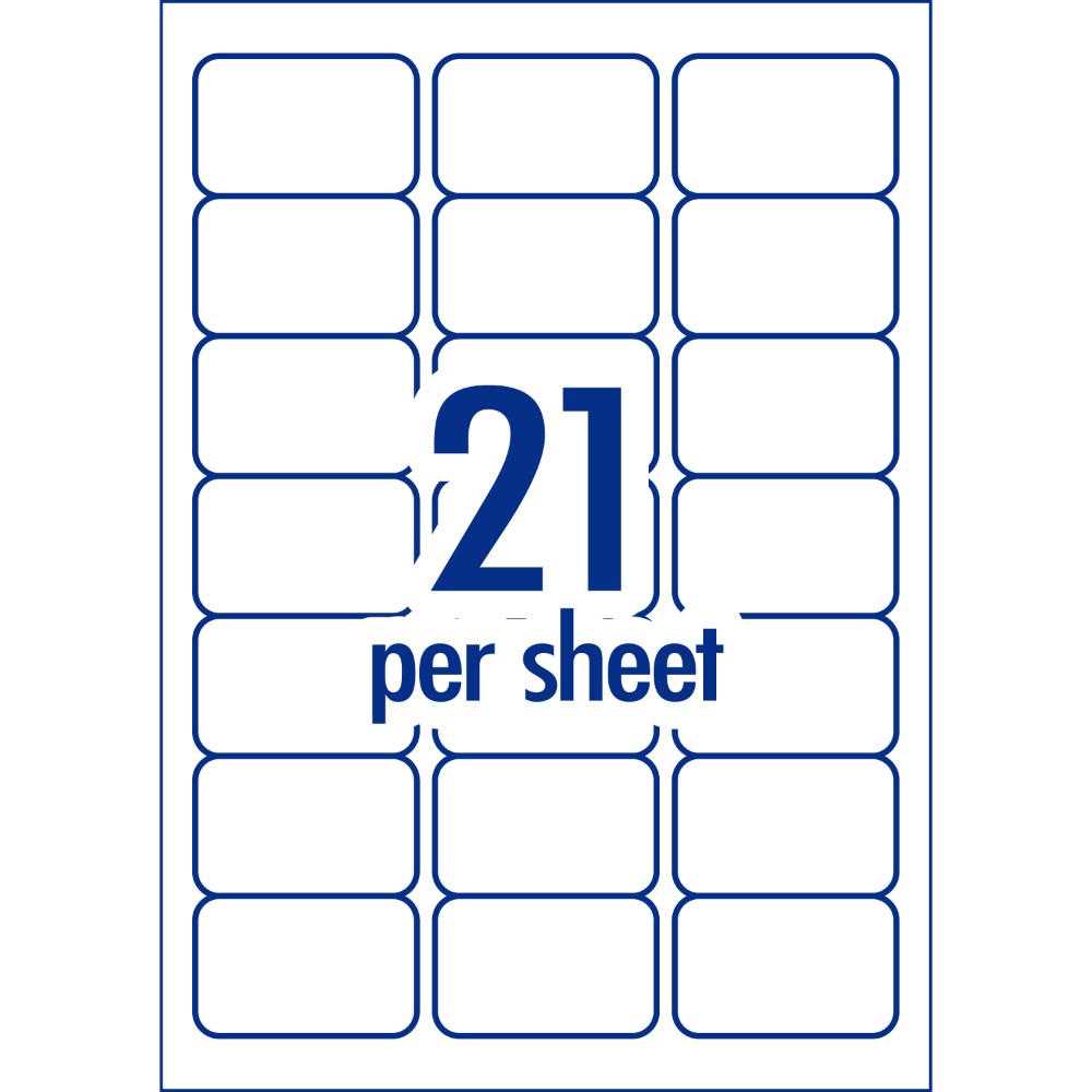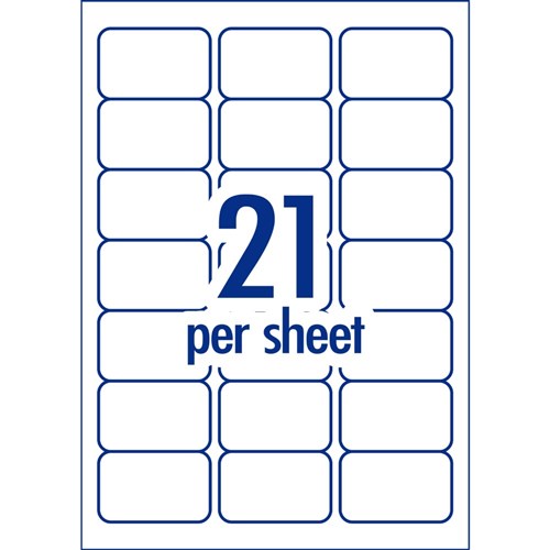 Size: 63.5 x 38.1mm, 1050 labels, 50 sheets. 21 labels per sheet (21UP).