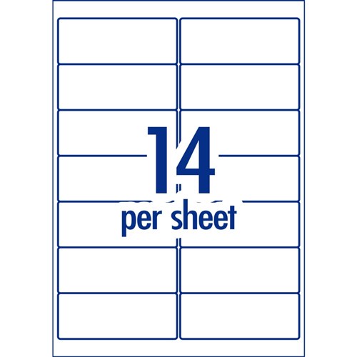 Size: 99.1 x 38.1 mm, 50 sheets, 14 labels per sheet (14UP).