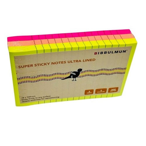 Bibbulmun Ultra Lined Super Sticky Notes 98 x 149mm Neon Assorted Pack Of 3