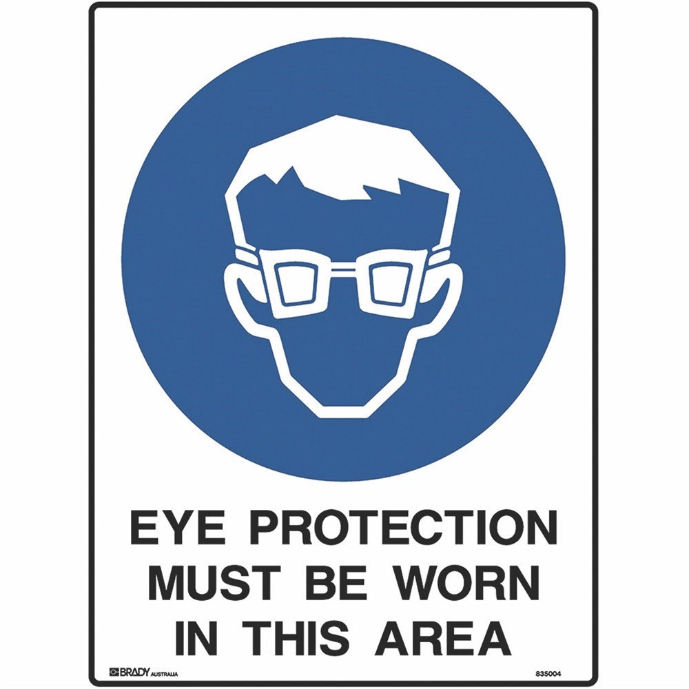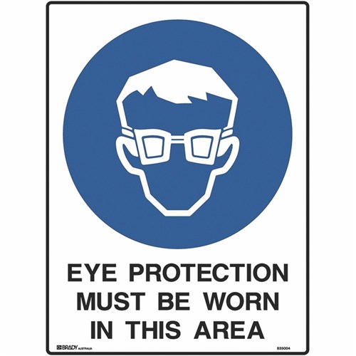 Brady Mandatory Sign Eye Protection Must Be Worn 450W x 600mmH Metal White/Blue