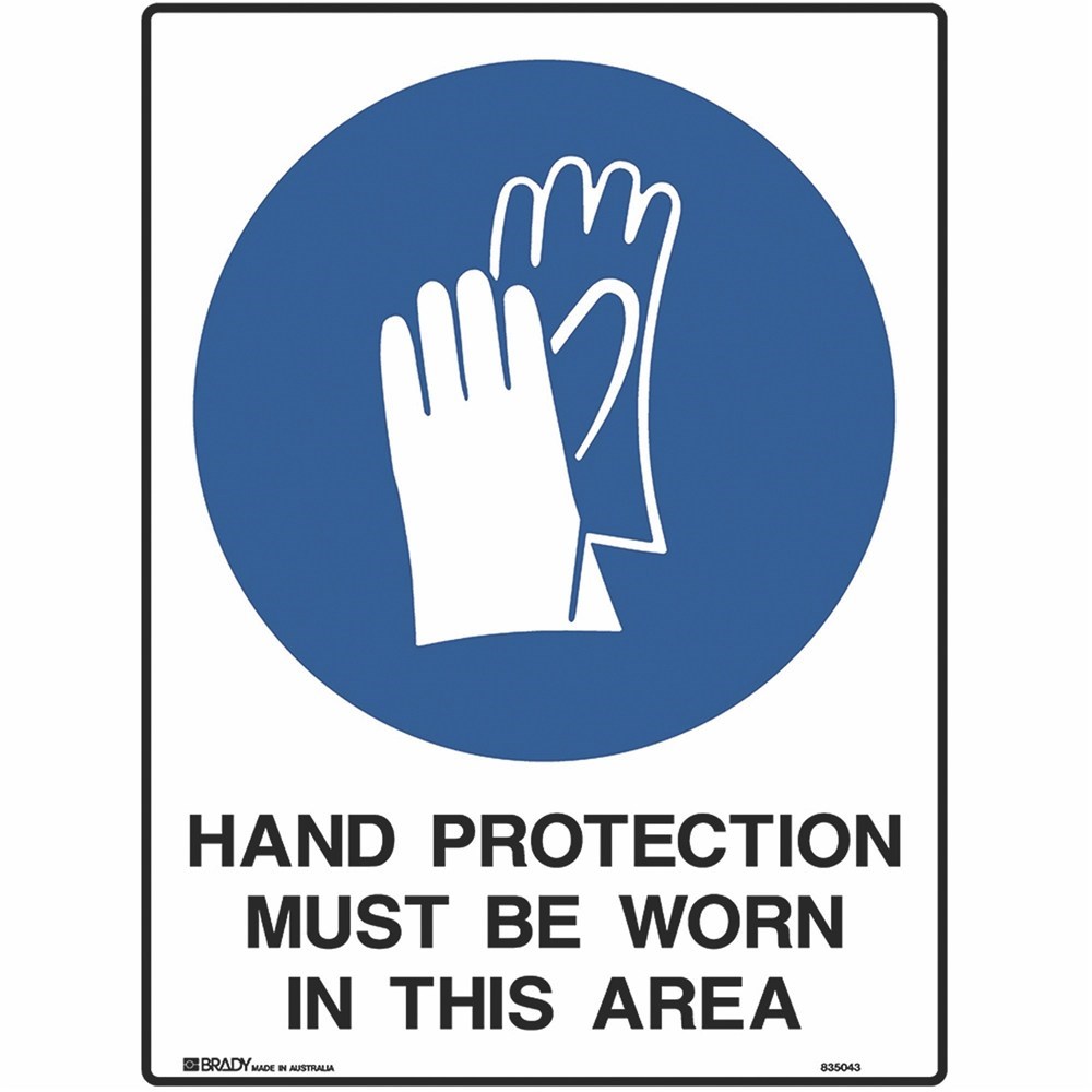Brady Mandatory Sign Hand Protection Must Be Worn 450W x 600mmH Metal White/Blue