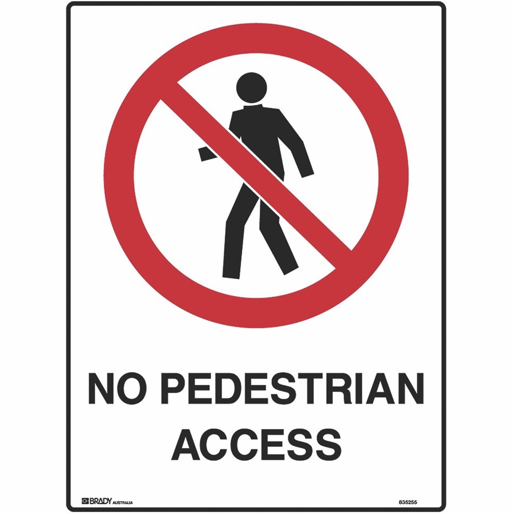 Brady Prohibition Sign No Pedestrian Access 450 x 600mmH Metal White/Red/Black