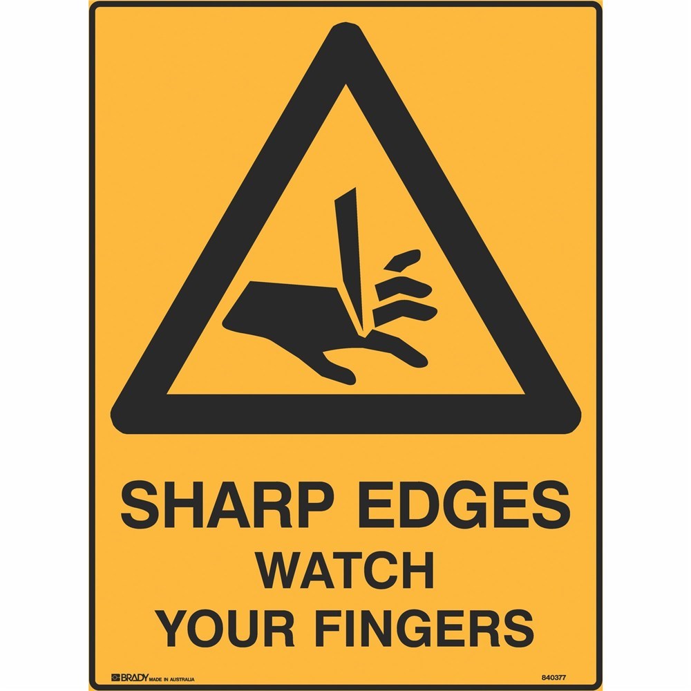 Brady Warning Safety Sign Sharp Edges Watch Your Fingers 450Wx600mmH Metal Yellow/Black