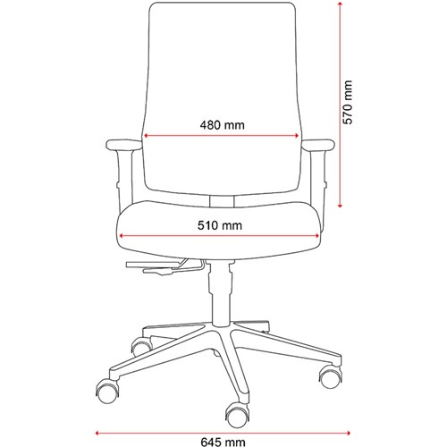 Seat Dimensions: 510W x 440-490D x 455-540mmH. Back Height: 570mm. Back Width: 480mm.