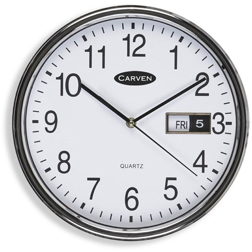 Carven Wall Clock 28.5cm Diameter With Date Silver Frame