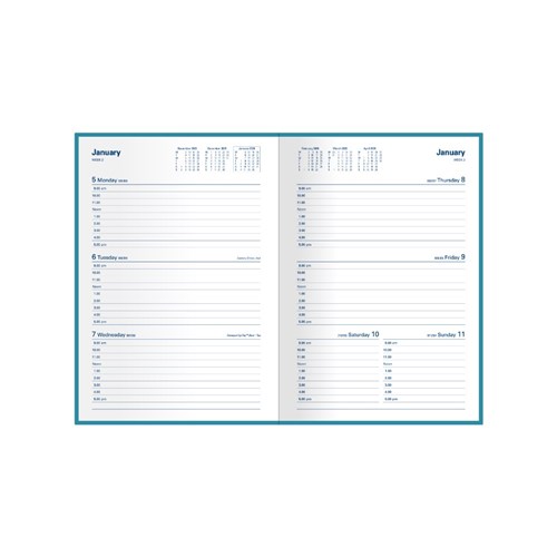 Bound in durable PVC with soft flexible cover. Printed on white paper, week numbers, Julian days, Australian and New Zealand holidays.
