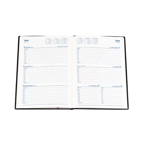Bound in a highly durable, welded PVC padded cover. Printed on white paper, week numbers and Julian days.