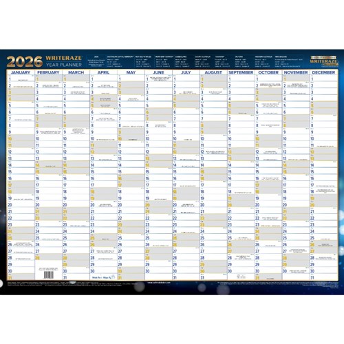 Collins Writeraze Dated Wall Planner 500 x 700mm Unframed Blue