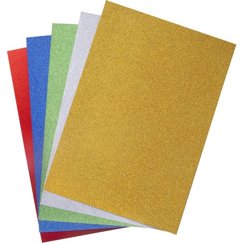 Sturdy assorted coloured glitter board ideal for adding some sparkle to your kids artworks.