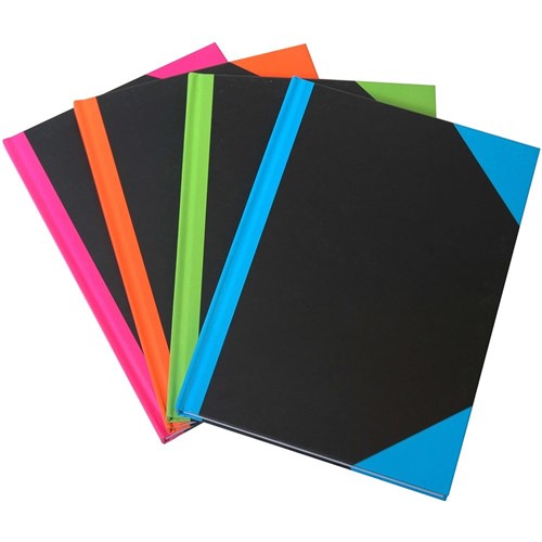 Cumberland Notebook A5 Ruled 192 Page Black With Bright Trim Assorted