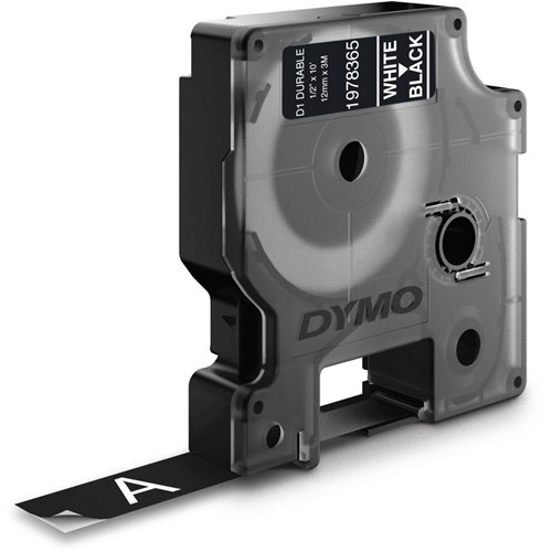 DYMO D1 Durable Industrial Tape Labels 12mm x 3m White On Black
