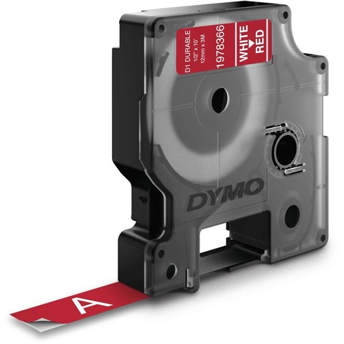 DYMO D1 Durable Industrial Tape Labels 12mm x 3m White On Red