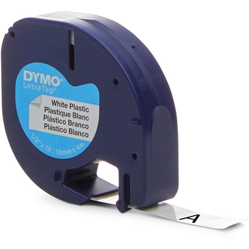 Dymo LetraTag Label Cassette Tape 12mm x 4m Black On White