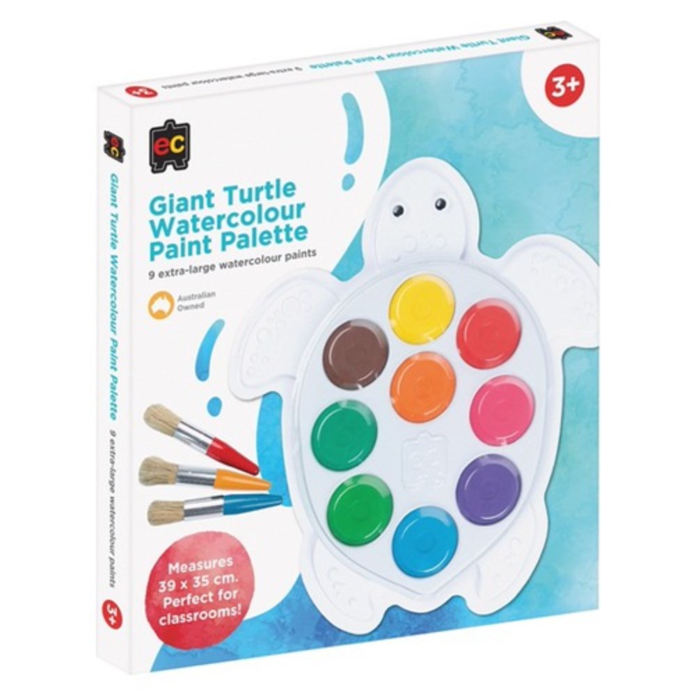 The perfect addition to any classroom. Turtle-shaped palette features 9 extra-large watercolour blocks that are highly pigmented, offering vibrant colours for all little artists' creations.