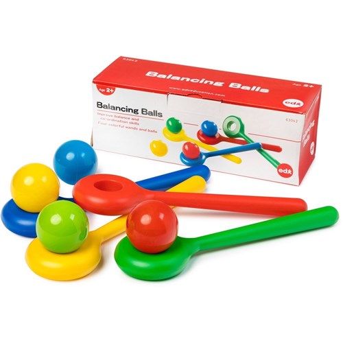 The moulded plastic 'spoons' are specially indented to hold the colourful balls so even beginners can balance successfully.