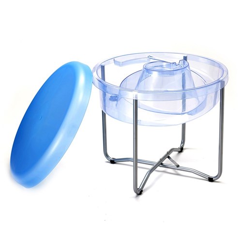 Circular sand and water tray designed with multiple interior levels and slopes to allow children to explore many different activities.
