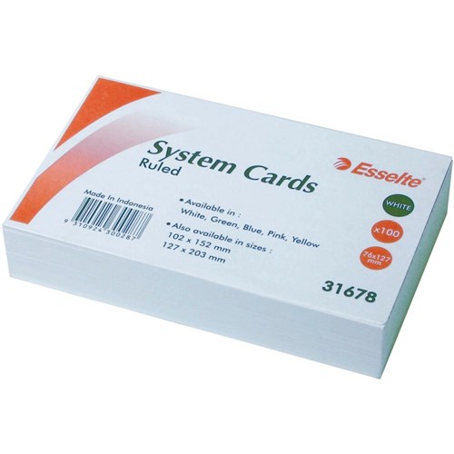 Esselte Ruled System Cards 127 x 76mm White Pack Of 100
