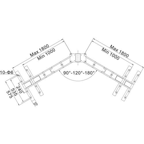 Suits top size from 1000 -1800mmW. Minimum depth of the desktop recommended is 600mm. 25mm thick table top is recommended.