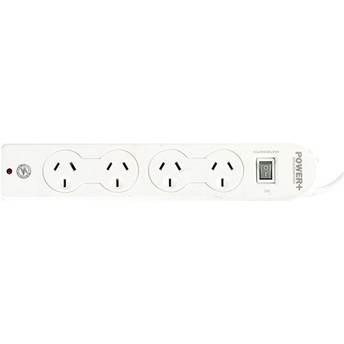Italplast Power+ 4 Outlet Powerboard Master Switch And Overload Protection White
