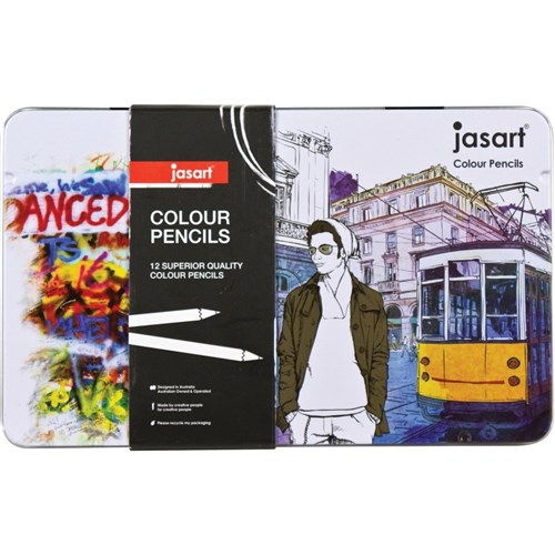 Jasart Studio 12 Colour Pencil Tin Assorted Pack of 12