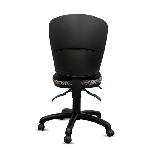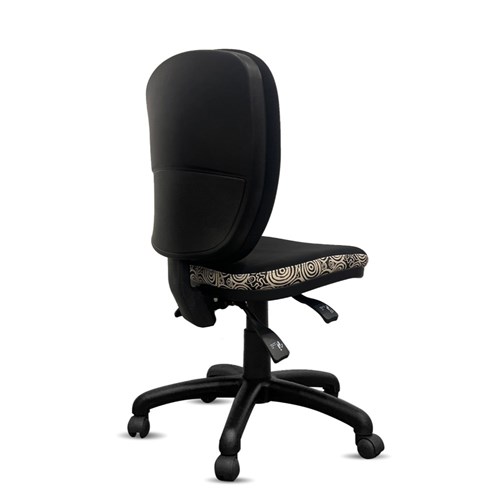 A unique commercial fabrics designed by Nelly Patterson (Indigenous Artist) combined with K2 Black Fabric to upholster the chair.