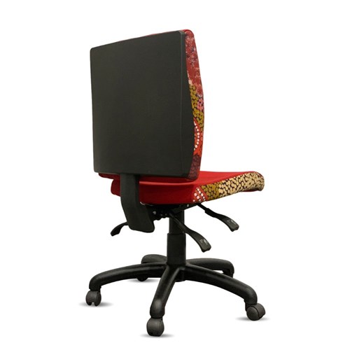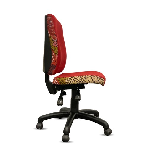 • A unique commercial fabrics designed by Damien and Yilpi Marks (Indigenous artists) combined with K2 Red Ochre Fabric to upholster the chair.