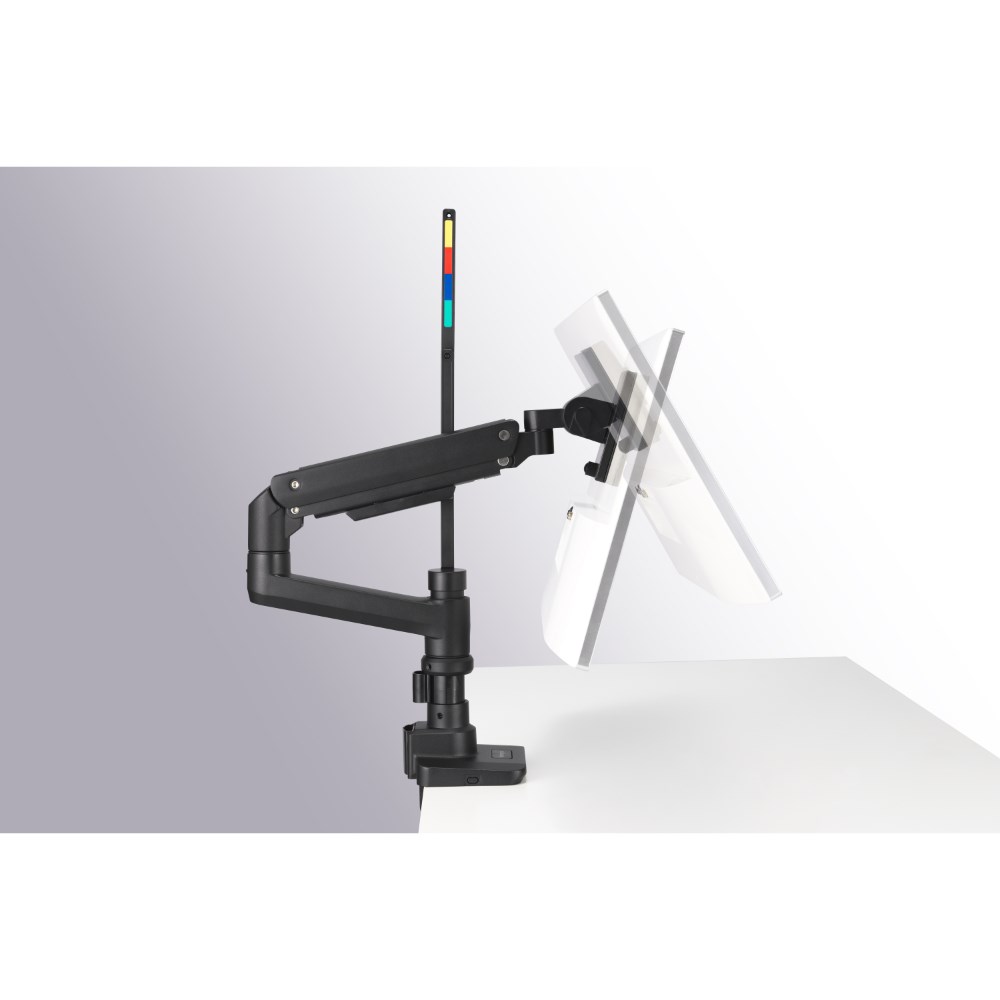 Full motion arm provides tilt, swivel and rotation options. +/-90 degree swivel, +50/-20 degree tilt adjustment, and +/-180 degree rotation capabilities.