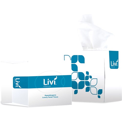 Livi Essentials Facial Tissues Luxury Hypoallergenic Cube 2 Ply 90 Sheets Box Of 24