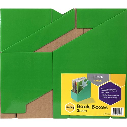 Marbig Book Boxes Large 170W x 250D x 270mmH Green Pack Of 5