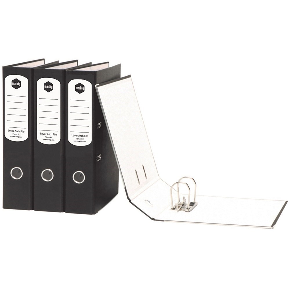 Marbig Lever Arch Binder A4 75mm Board Paper Spine Mottle Black