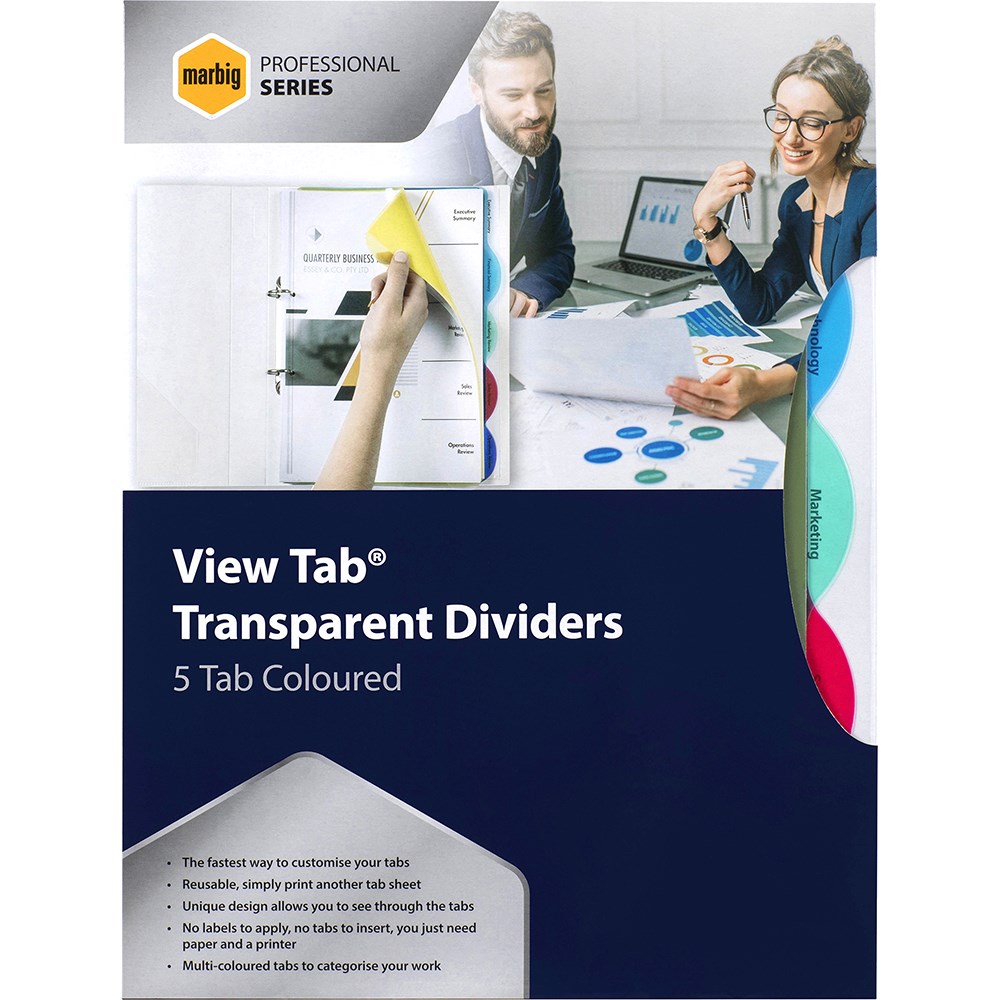 Marbig Professional Series Dividers A4 5 View Tab Extra Wide Transparent Multi Colour