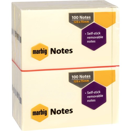Marbig Repositionable Notes 75 x 125mm Yellow 100 Sheet Pad Pack Of 12