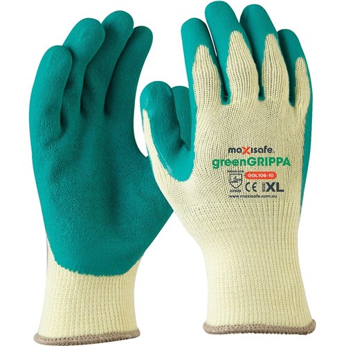 Maxisafe greenGRIPPA Gloves Latex Dipped Palm And Knitted Poly Cotton Medium Green