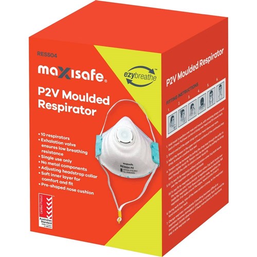 Maxisafe P2V Moulded Respirator Disposable With Valve White Pack Of 10