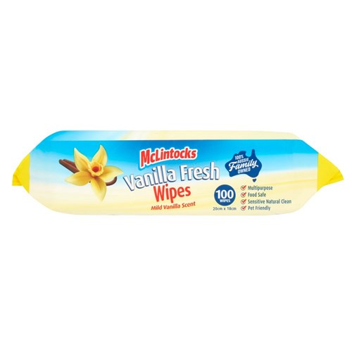 McLintocks Vanilla Fresh Anti-Bacterial Multi Purpose Cleaning Wipes Pack Of 100