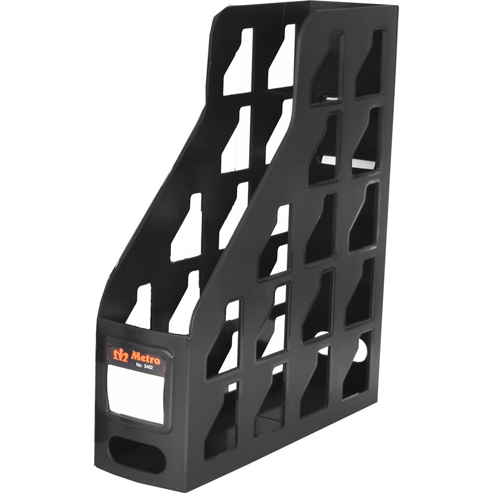 Magazine racks are wide enough to take a telephone book and deep enough to fit an A4 ring binder.