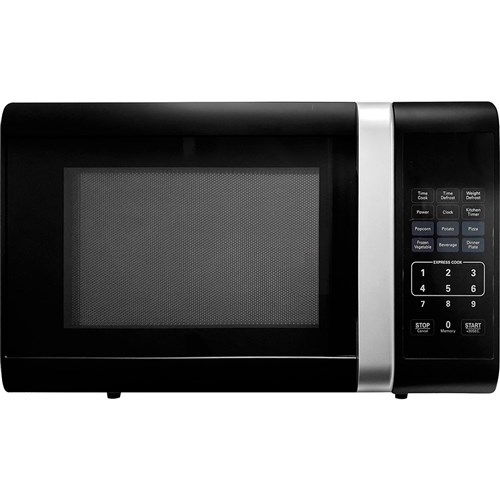 Easy clean black conventional 23L microwave with LED display and grey interior, speedy one touch cooking and incremental power settings.