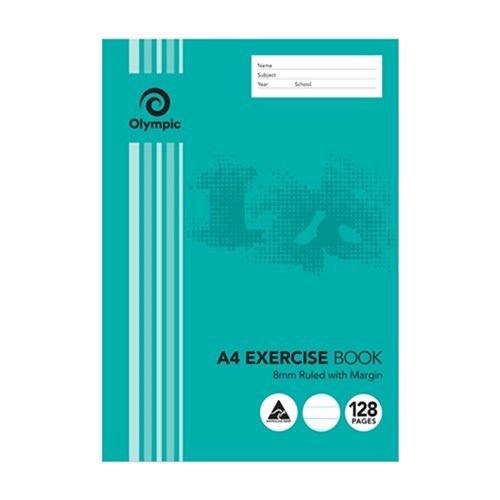 Olympic E812 Exercise Book A4 8mm Ruled With Red Margin 128 Page