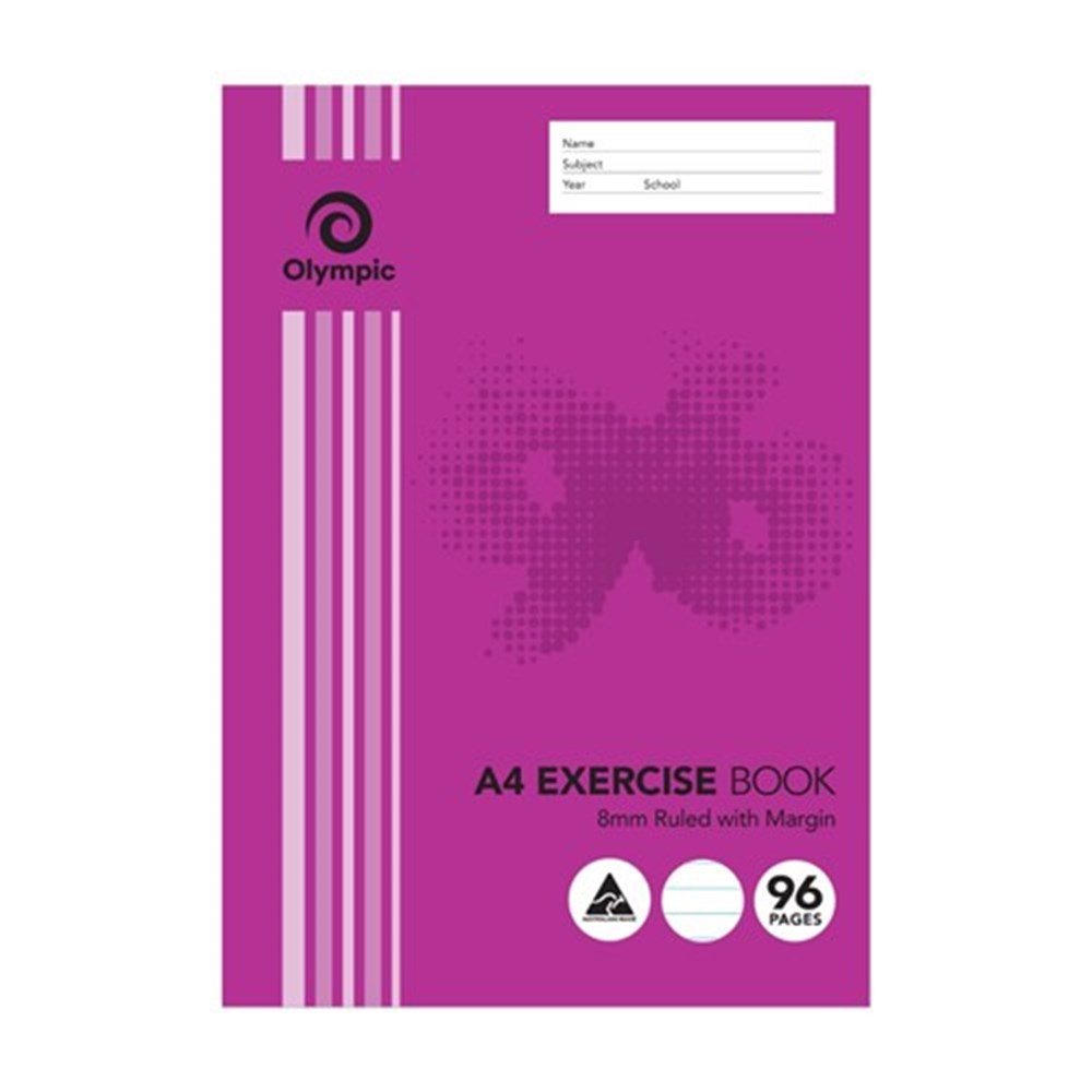 Olympic E896 Exercise Book A4 8mm Ruled With Red Margin 96 Page